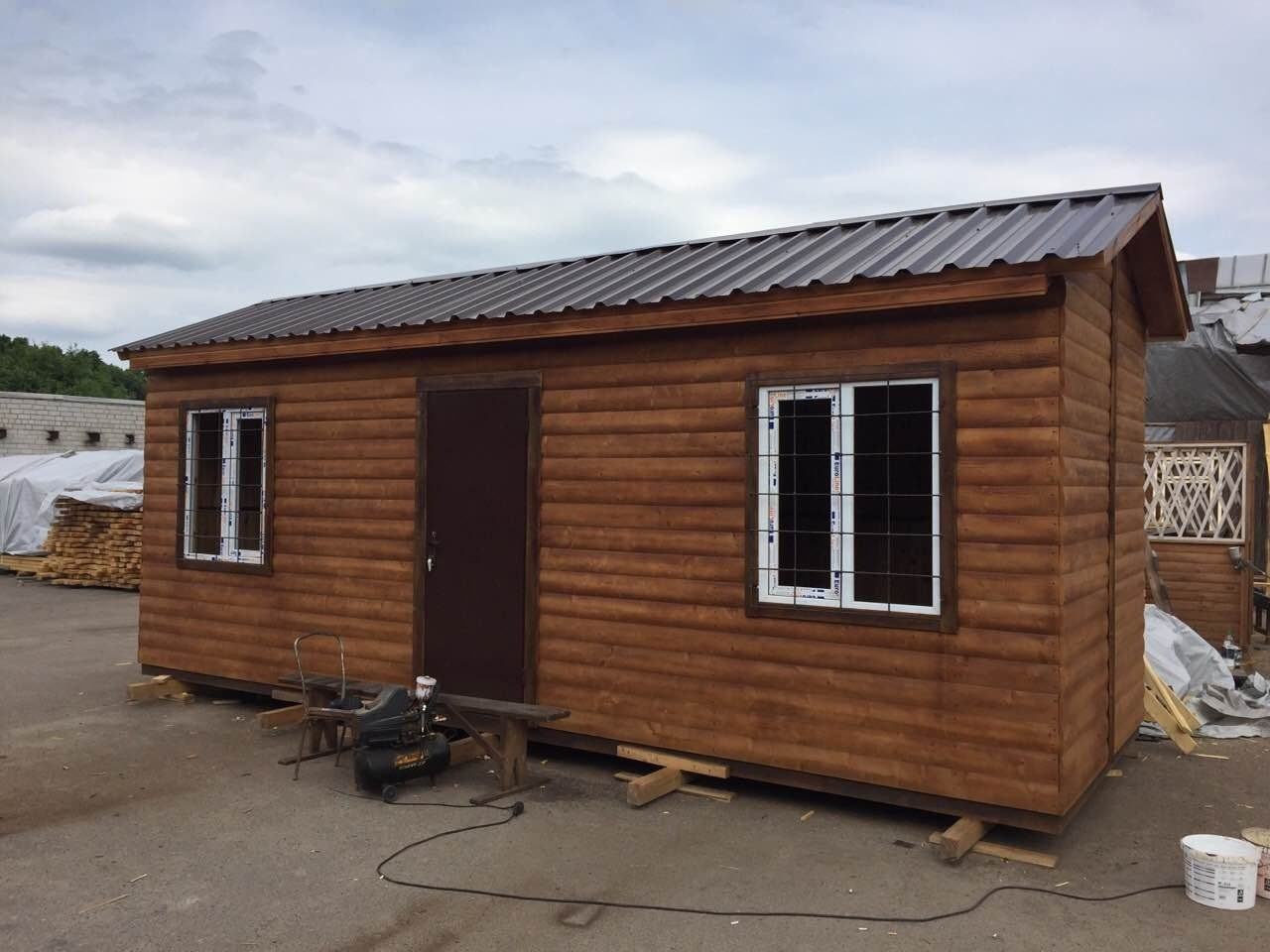 Розмір: 6х2, 4 м. Матеріал: дерево. Будинок охорони мобільний Промконтракт відрізняється комфортом, необхідним технічним оснащенням, максимальним оглядом та мобільністю. Такий будинок досить просто перевозити та монтувати.