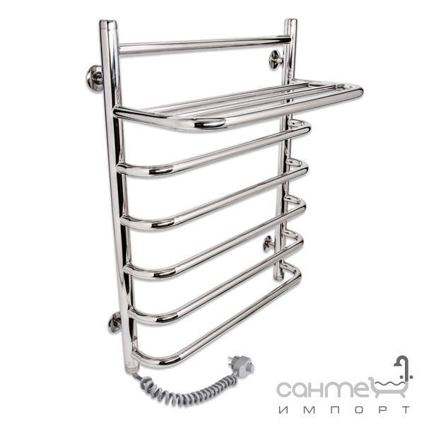 Полірований полотенцесушитель Laris Стандарт з полицею П5 500х600 хром підключення праворуч