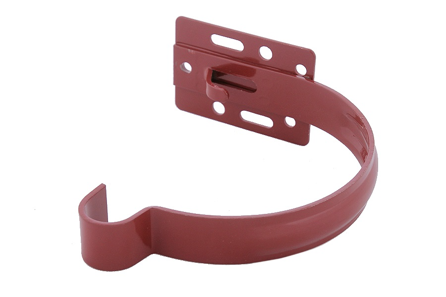 RAL: 3005, кг. Вага: 0.200, Висота м.: 0.024, Гарантія: 10 років, Довжина м.: 0.110, Од. вим.: Шт., Матеріал: Сталь, Призначення: Застосовується для фіксації ринв. Призначений для кріплення ринви до покрівельної конструкції і завдання необхідного ухилу водостічної системи в цілому. Монтується на лобову дошку або на торцях покрівлі на відстані не більше 50 см один від одного., Переваги: Стійкий до атмосферних опадів, що містить кислоти, солі і активні хімічні елементи; зручність і простота монтажу; витримує вагу до 100 кг; оцинк перед фарбуванням, що захищає елемент від корозії; забарвлений високоякісної полімерною фарбою., Розмір системи: 90/75, Система: Система 90/75, Термін експлуатації: 25 років, Температурний діапазон застосування: -50 С до +60 С, Тип товару: Тримачі, Колір: Червоний, Ширина м.: 0.115