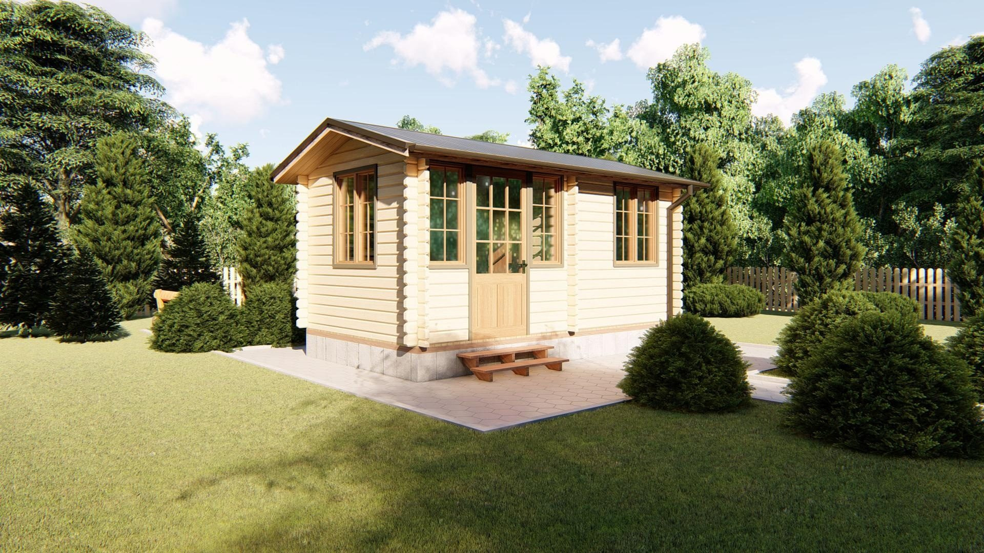 Будинок із профільованого бруса 5,4x3,0 м представиться своїм новим власникам, як затишне, естетичне та екологічно чисте місце для відпочинку з сім'єю та друзями. Незважаючи на свої скромні розміри – загальна площа 16,2 кв/м, цей чудовий будиночок має дві кімнати для облаштування спальні та їдальні, яку можна поєднати з кухнею. Плюсом буде і те, що Ви самі можете визначити основний матеріал для будівництва садового будинку серед бруса різної модифікації. На нашому сайті у Вас є можливість підібрати вже готовий проект дачного будинку, ціна якого збігається з Вашими можливостями, а також купити садовий будинок під ключ, який спроектують та побудують професійні майстри. Хто ж не мріє про власний дачний будиночок? Багатьом хочеться придбати доступну за ціною, і в той же час надійну та красиву модель з якісного матеріалу. Цей будинок – чудовий варіант. Виготовлений із бруса, він ідеально впишеться у будь-який ландшафт. Все природне зараз на піку популярності, тому дерев'яний будинок природного коричневого кольору дозволить надати дачі або саду не тільки чарівність, але і стиль. Зовнішній вигляд важливий, але не варто забути про функціонал. Брус хороший не тільки з декоративного погляду, він ще й надійний. Більш міцний та зносостійкий матеріал і уявити складно. Будь-яка негода буде дарма дачному будиночку з бруса. Крім цього, особливих умов експлуатації він не вимагає, можна сміливо встановлювати на будь-який ґрунт. Ще одна перевага - дерево має унікальну здатність влітку зберігати прохолоду якомога довше, а взимку - тепло. Тому в такому будинку не буде задушливо у весняно-літній період і холодно в осінньо-зимовий. Садовий будиночок дозволить перетворити дачу на місце відновлення життєвих сил та енергії. Дерево - єдиний матеріал, який сприяє підтримці у приміщенні оптимальної вологості та постійного повітрообміну. Він абсолютно екологічно чистий та гіпоалергенний, а значить кращого вибору для дачі або саду, ніж будиночок із бруса просто не існує.