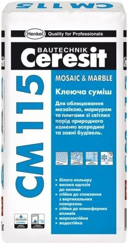 Опис Клеюча суміш Ceresit СМ 115 Mosaic & Marble 25 кг