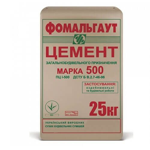 Характеристики товару Цемент М500 Д0 25 кг Фомальгаут-Полімін
