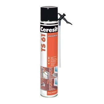 Об'єм: 300 мл. Температура застосування: від +5 до +25 °C. Монтажна піна універсальна Ceresit TS 61 Стандарт 300 мл - підходить для нерівних поверхонь, добре заповнює порожнечі.