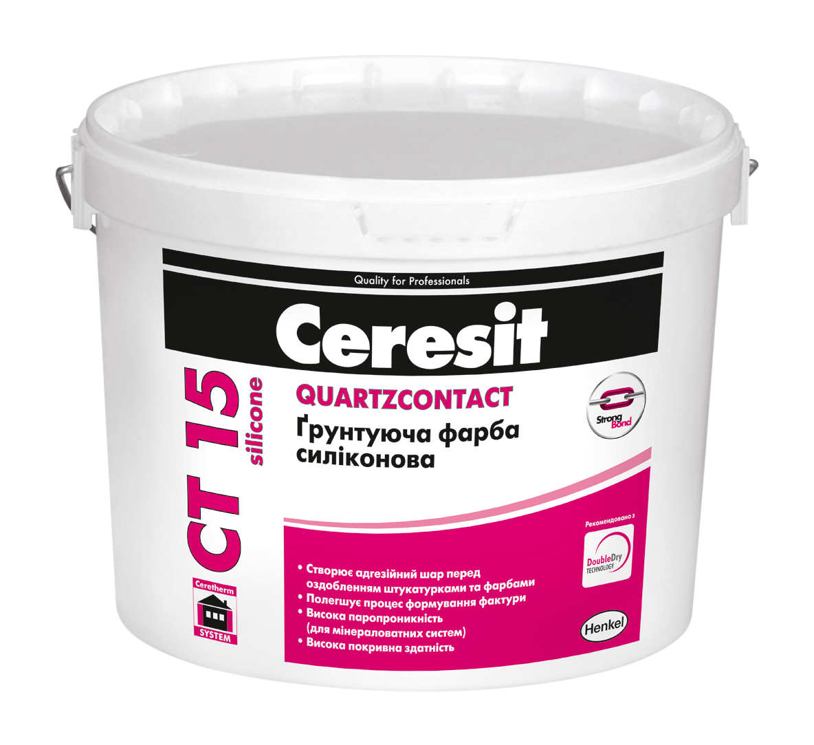 Характеристики товару Грунтуюча фарба Ceresit CT 15 silicone QUARTZCONTACT 10 л