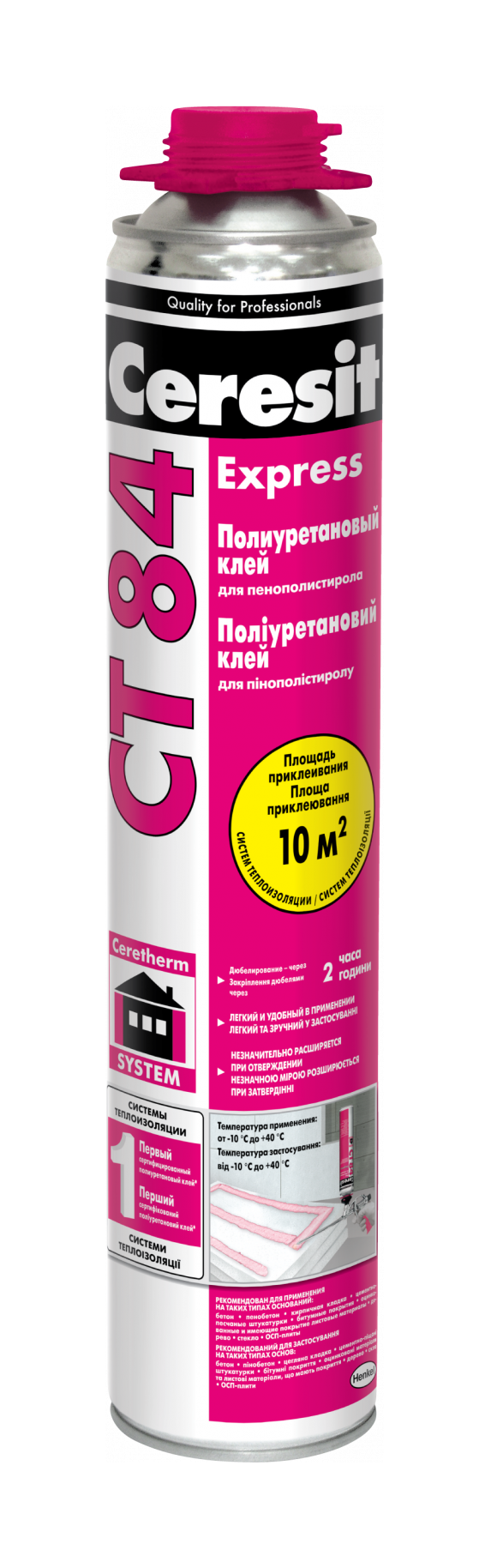 Область застосування: для внешних работ. Фасовка: 850 мл. Витрата: 85 мл/м2. Поліуретановий клей Ceresit ct 84 850 мл застосовується для міцного і надійного з'єднання різних конструктивних елементів.