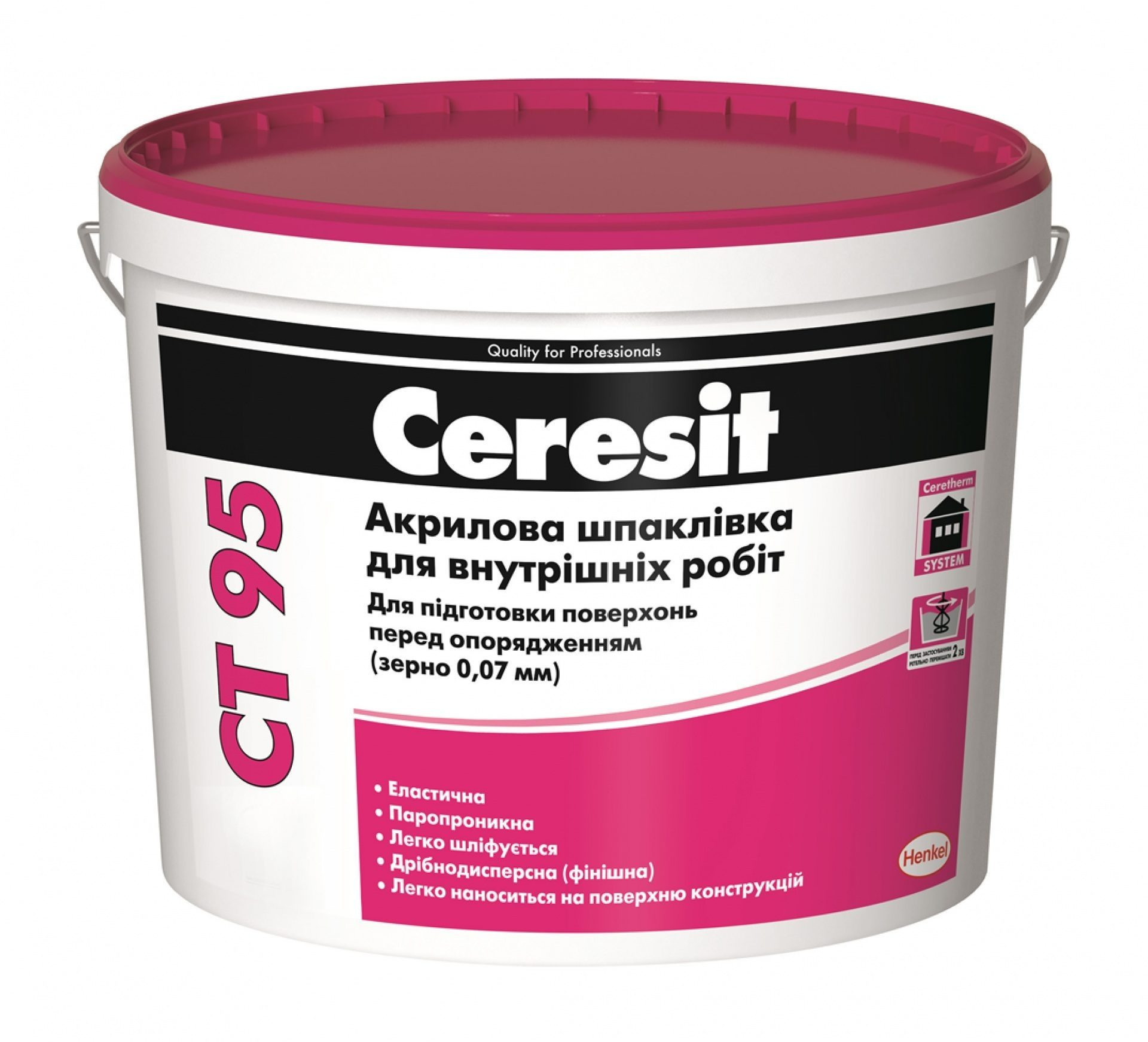 Характеристики товару Акрилова шпаклівка Ceresit СТ 95 зерно 0,07 мм 5 л