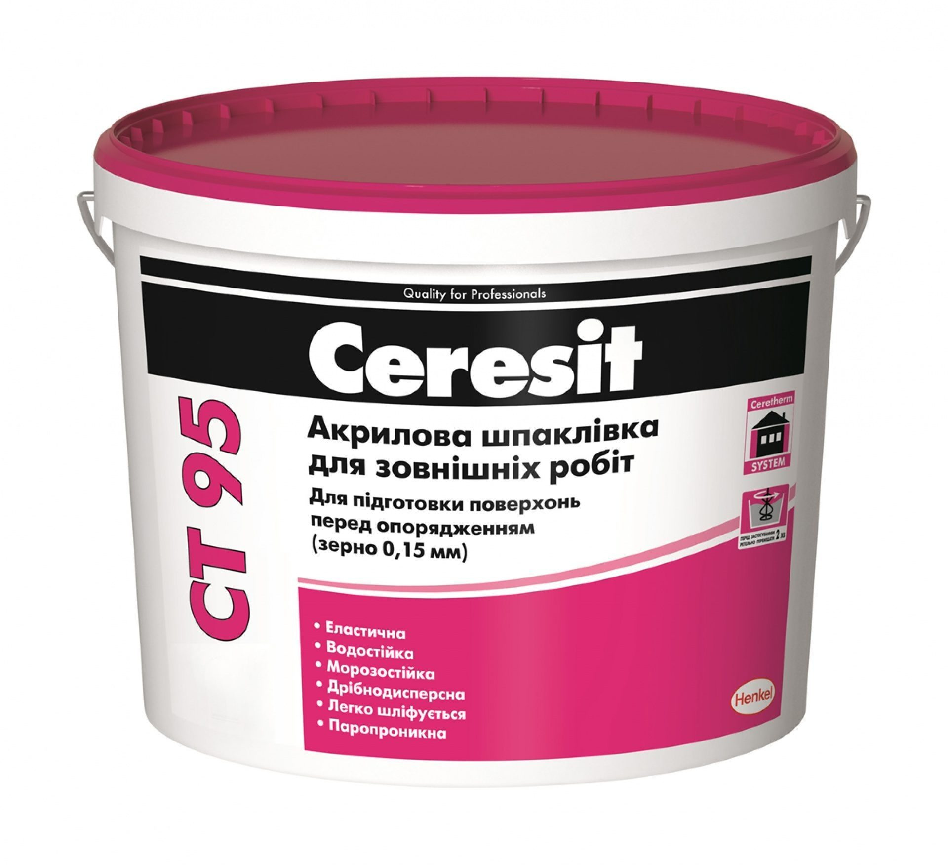 Характеристики товару Акрилова шпаклівка Ceresit СТ 95 зерно 0,15 мм 10 л