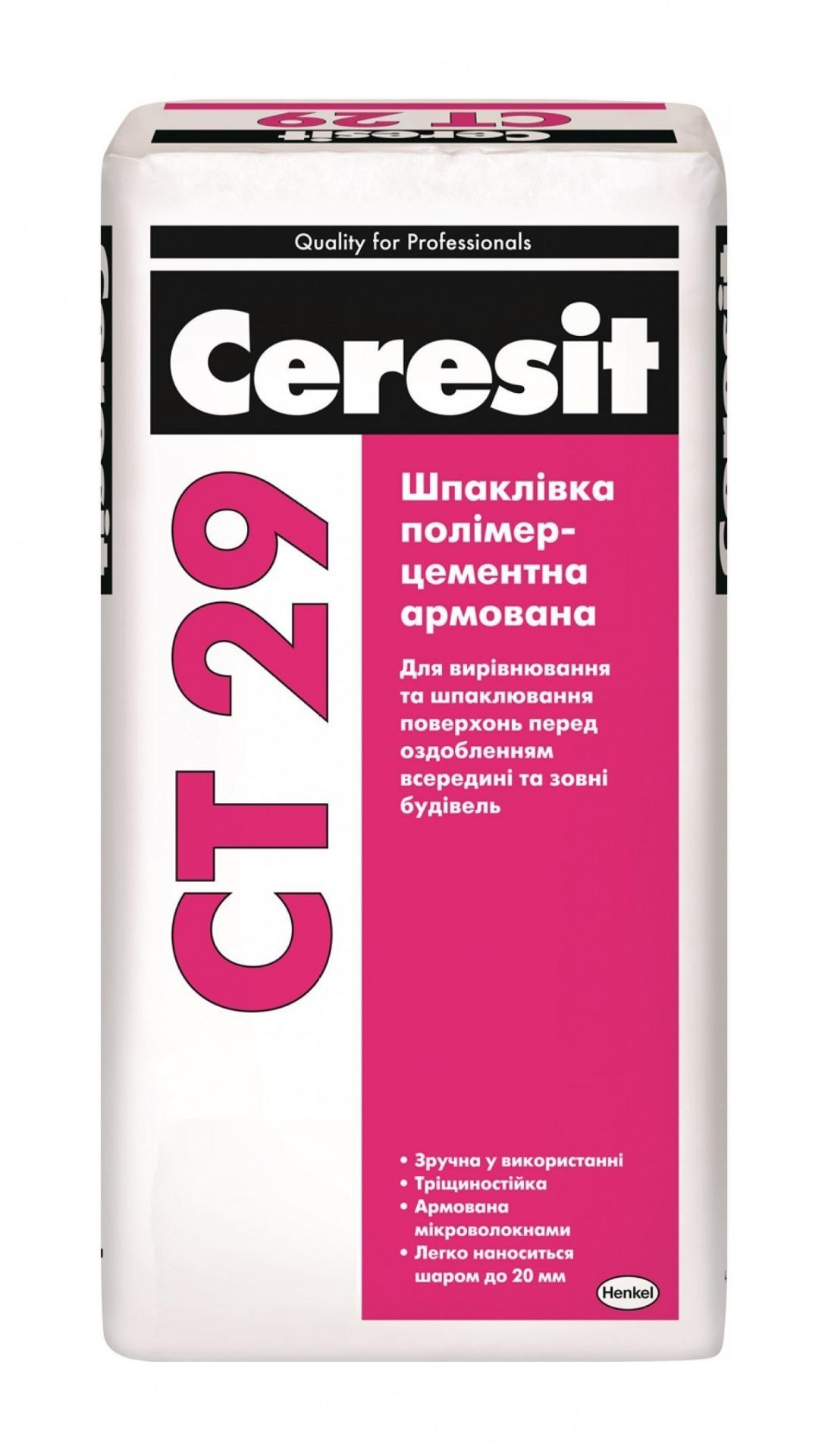 Характеристики товару Полімерцементна шпаклівка Ceresit СТ 29 армована 25 кг