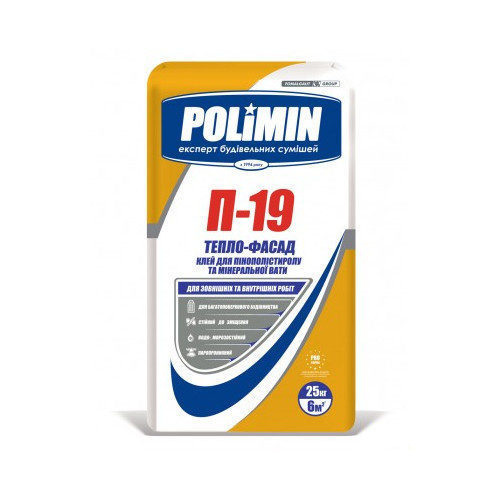 Клей для мінеральної вати та пінополістиролу Polimin Тепло-фасад П-19 25 кг