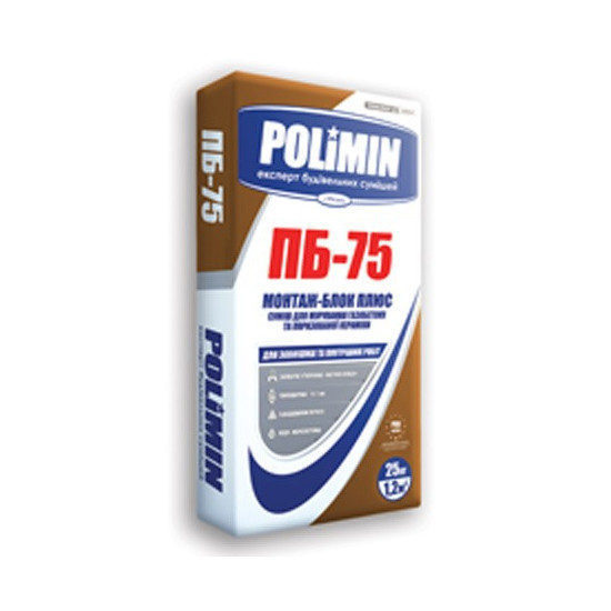 Клейова суміш для кладки Polimin Монтаж-блок плюс ПБ-75 25 кг