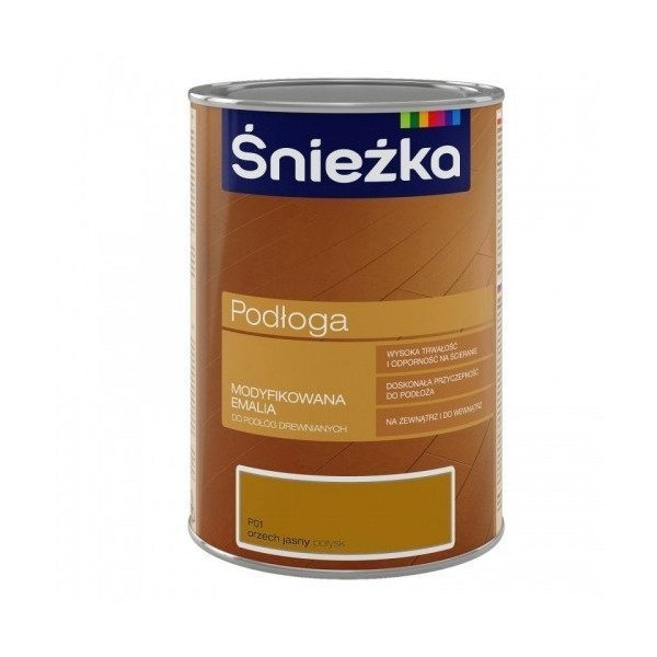Фасовка: 1 л. Витрата: 0.083 л/м2. Модифікована емаль Sniezka Podloga 1 л має підвищену зносостійкість. Час висихання: 7...18 г. Температура зберігання: -20...20 °C. Ступінь глянця: напівматова. Термін придатності: 24 місяць.