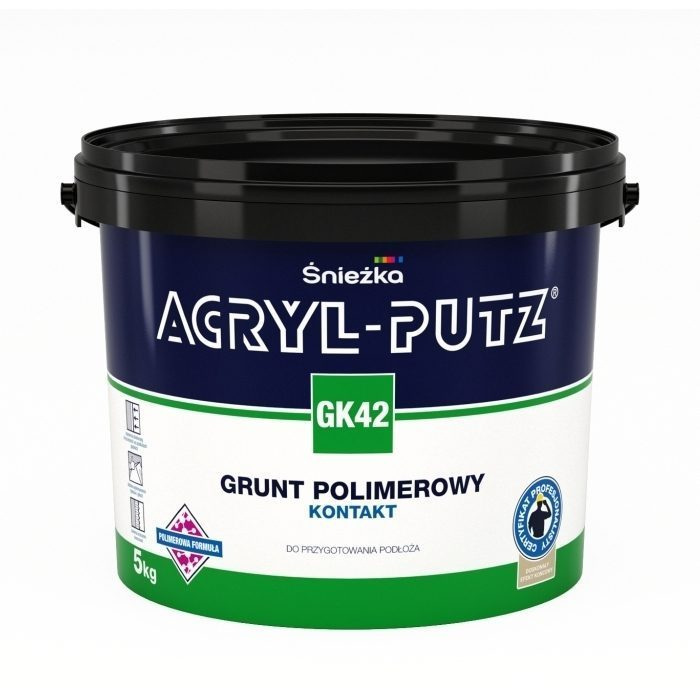 Фасовка: 5 кг. Витрата: 300 г/м2. Грунтовка полімерна Sniezka Acryl-putz GK42 контакт 5 кг відповідає міжнародним нормам і вимогам. За складом: інший. Призначення: для підлоги, для стін, для стелі. Температура застосування: від +5 до +25 °C. Час висихання: 24 г.