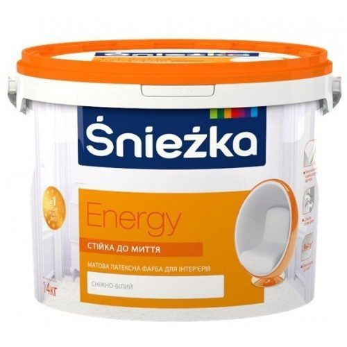Опис Матова латексна фарба Sniezka Energy 1,4 кг сніжно-біла