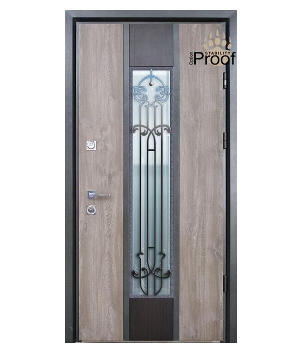 Компания «Страж» - украинское предприятие европейского уровня, которое уже 19 лет занимается изготовлением высококачественных дверей для частных домов и городских квартир. Компания постоянно обновляет модельный ряд, регулярно участвует в специализированных выставках, развивается и повышает качество своих изделий. Компания «Страж» использует только самые современные технологии, качественные материалы, высококлассную фурнитуру, замки от зарекомендовавших себя итальянских и российских производителей, а также авторский декор – кованые элементы и витражное стекло.На сегодняшний день ТМ «Страж» предлагает покупателям широчайший модельный ряд входных дверей – от бюджетных изделий – до серий премиум-класса. Входные двери «Страж» - это оптимальное соотношение цены и качества, индивидуальный подход к каждому клиенту и высочайший уровень сервиса.Компания «Страж» представляет новую коллекцию входных уличных дверей Stability PROOF. Особенностью конструкции является специализированный стальной лист с покрытием ПВХ "Винорит", который изготовлен на основе оцинкованного плоского проката, толщиной 1,2 мм., при толщине покрытия цинка 230 г./кв.м. Ламинированый стальной лист изготавливается компанией Страж методом кашированния на автоматизированной производственной линии европейского производства. Процесс происходит под воздействием давления, температуры и термохимический реакции. В результате покрытие обладает высокими эксплуатационными свойствами.Входные двери Stability PROOF устойчивы к перепадам температур, агрессивным климатическим воздействиям и ультрафиолетовым лучам. В конструкции дверного полотна предусмотрен термомост, что препятствует появлению конденсата, при разнице температур. Надежная входная дверь Stability PROOF станет гарантом безопасности вашего дома.