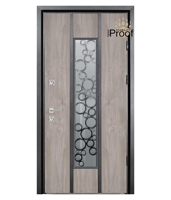 Компания «Страж» - украинское предприятие европейского уровня, которое уже 19 лет занимается изготовлением высококачественных дверей для частных домов и городских квартир. Компания постоянно обновляет модельный ряд, регулярно участвует в специализированных выставках, развивается и повышает качество своих изделий. Компания «Страж» использует только самые современные технологии, качественные материалы, высококлассную фурнитуру, замки от зарекомендовавших себя итальянских и российских производителей, а также авторский декор – кованые элементы и витражное стекло.На сегодняшний день ТМ «Страж» предлагает покупателям широчайший модельный ряд входных дверей – от бюджетных изделий – до серий премиум-класса. Входные двери «Страж» - это оптимальное соотношение цены и качества, индивидуальный подход к каждому клиенту и высочайший уровень сервиса.Компания «Страж» представляет новую коллекцию входных уличных дверей Stability PROOF. Особенностью конструкции является специализированный стальной лист с покрытием ПВХ "Винорит", который изготовлен на основе оцинкованного плоского проката, толщиной 1,2 мм., при толщине покрытия цинка 230 г./кв.м. Ламинированый стальной лист изготавливается компанией Страж методом кашированния на автоматизированной производственной линии европейского производства. Процесс происходит под воздействием давления, температуры и термохимический реакции. В результате покрытие обладает высокими эксплуатационными свойствами.Входные двери Stability PROOF устойчивы к перепадам температур, агрессивным климатическим воздействиям и ультрафиолетовым лучам. В конструкции дверного полотна предусмотрен термомост, что препятствует появлению конденсата, при разнице температур. Надежная входная дверь Stability PROOF станет гарантом безопасности вашего дома.