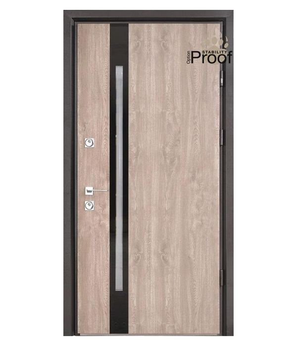 Компания «Страж» - украинское предприятие европейского уровня, которое уже 19 лет занимается изготовлением высококачественных дверей для частных домов и городских квартир. Компания постоянно обновляет модельный ряд, регулярно участвует в специализированных выставках, развивается и повышает качество своих изделий. Компания «Страж» использует только самые современные технологии, качественные материалы, высококлассную фурнитуру, замки от зарекомендовавших себя итальянских и российских производителей, а также авторский декор – кованые элементы и витражное стекло.На сегодняшний день ТМ «Страж» предлагает покупателям широчайший модельный ряд входных дверей – от бюджетных изделий – до серий премиум-класса. Входные двери «Страж» - это оптимальное соотношение цены и качества, индивидуальный подход к каждому клиенту и высочайший уровень сервиса.Компания «Страж» представляет новую коллекцию входных уличных дверей Stability PROOF. Особенностью конструкции является специализированный стальной лист с покрытием ПВХ "Винорит", который изготовлен на основе оцинкованного плоского проката, толщиной 1,2 мм., при толщине покрытия цинка 230 г./кв.м. Ламинированый стальной лист изготавливается компанией Страж методом кашированния на автоматизированной производственной линии европейского производства. Процесс происходит под воздействием давления, температуры и термохимический реакции. В результате покрытие обладает высокими эксплуатационными свойствами.Входные двери Stability PROOF устойчивы к перепадам температур, агрессивным климатическим воздействиям и ультрафиолетовым лучам. В конструкции дверного полотна предусмотрен термомост, что препятствует появлению конденсата, при разнице температур. Надежная входная дверь Stability PROOF станет гарантом безопасности вашего дома.