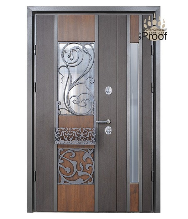 Компания «Страж» - украинское предприятие европейского уровня, которое уже 19 лет занимается изготовлением высококачественных дверей для частных домов и городских квартир. Компания постоянно обновляет модельный ряд, регулярно участвует в специализированных выставках, развивается и повышает качество своих изделий. Компания «Страж» использует только самые современные технологии, качественные материалы, высококлассную фурнитуру, замки от зарекомендовавших себя итальянских и российских производителей, а также авторский декор – кованые элементы и витражное стекло.На сегодняшний день ТМ «Страж» предлагает покупателям широчайший модельный ряд входных дверей – от бюджетных изделий – до серий премиум-класса. Входные двери «Страж» - это оптимальное соотношение цены и качества, индивидуальный подход к каждому клиенту и высочайший уровень сервиса.Компания «Страж» представляет новую коллекцию входных уличных дверей Stability PROOF. Особенностью конструкции является специализированный стальной лист с покрытием ПВХ "Винорит", который изготовлен на основе оцинкованного плоского проката, толщиной 1,2 мм., при толщине покрытия цинка 230 г./кв.м. Ламинированый стальной лист изготавливается компанией Страж методом кашированния на автоматизированной производственной линии европейского производства. Процесс происходит под воздействием давления, температуры и термохимический реакции. В результате покрытие обладает высокими эксплуатационными свойствами.Входные двери Stability PROOF устойчивы к перепадам температур, агрессивным климатическим воздействиям и ультрафиолетовым лучам. В конструкции дверного полотна предусмотрен термомост, что препятствует появлению конденсата, при разнице температур. Надежная входная дверь Stability PROOF станет гарантом безопасности вашего дома.