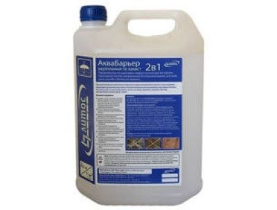 Аквабар'єр 2 в 1 зміцнення і захист» призначений для зміцнення поверхневого шару матеріалів і надання відштовхують властивостей усіх мінеральних матеріалів – тротуарної плитки, натурального і штучного каменю, цегли, всіма видами кераміки, виробів з бетону, декоративної штукатурки та ін