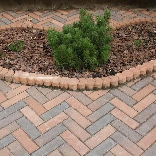 Характеристики товару Поребрик фігурний круглий Золотий Мандарин 500х80х250 мм на сірому цементі персиковий