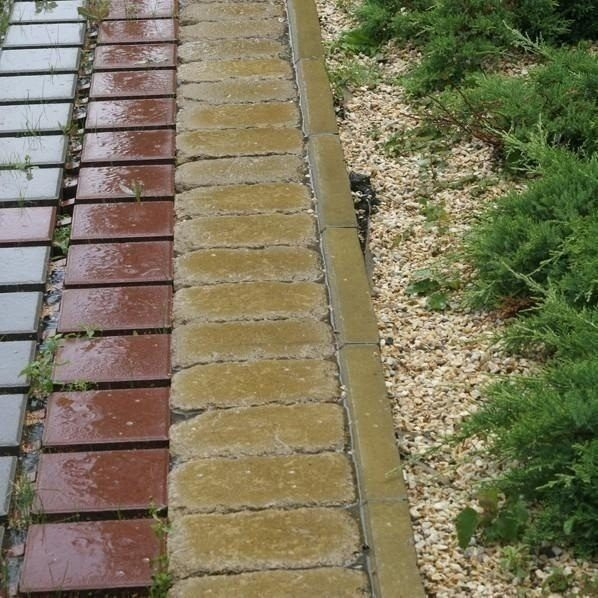 Характеристики товару Поребрик Золотий Мандарин 500х200х60 мм на сірому цементі гірчичний