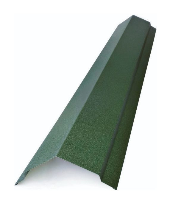 Призначення: для металлочерепицы. Матеріал: сталь. Гребінь плоский Тайл тип 1 30х15х100х100х15х30 мм зелений використовується для створення завершеного та естетичного вигляду покрівлі.
