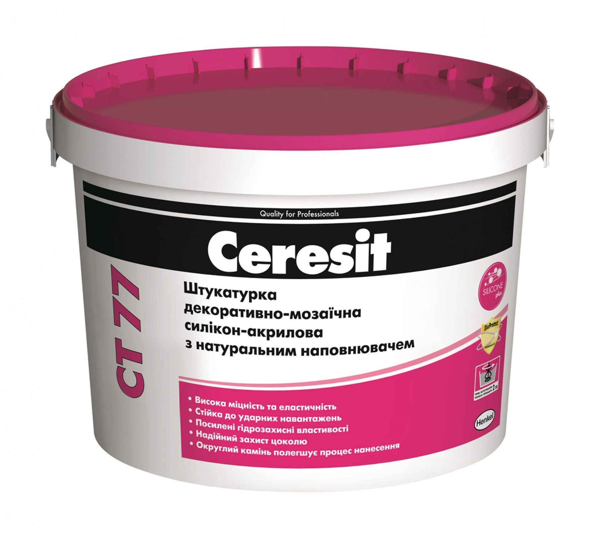 Характеристики товару Штукатурка декоративно-мозаїчна Ceresit CT 77 силікон-акрилова 1,4-2,0 мм 14 кг PERU 4