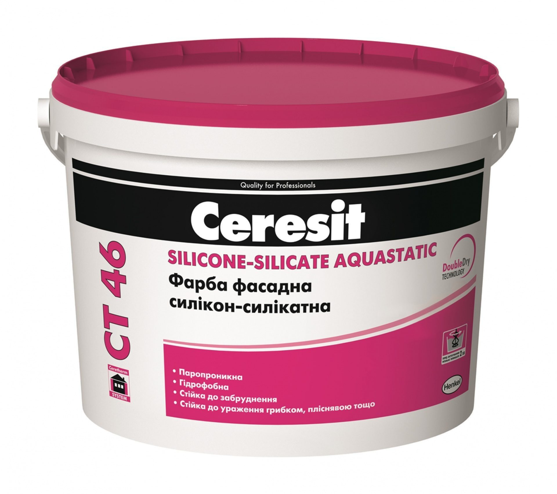 Опис Фарба силікон-силікатна фасадна Ceresit CT 46 SIL-SIL AQUASTATIC База B 3 л