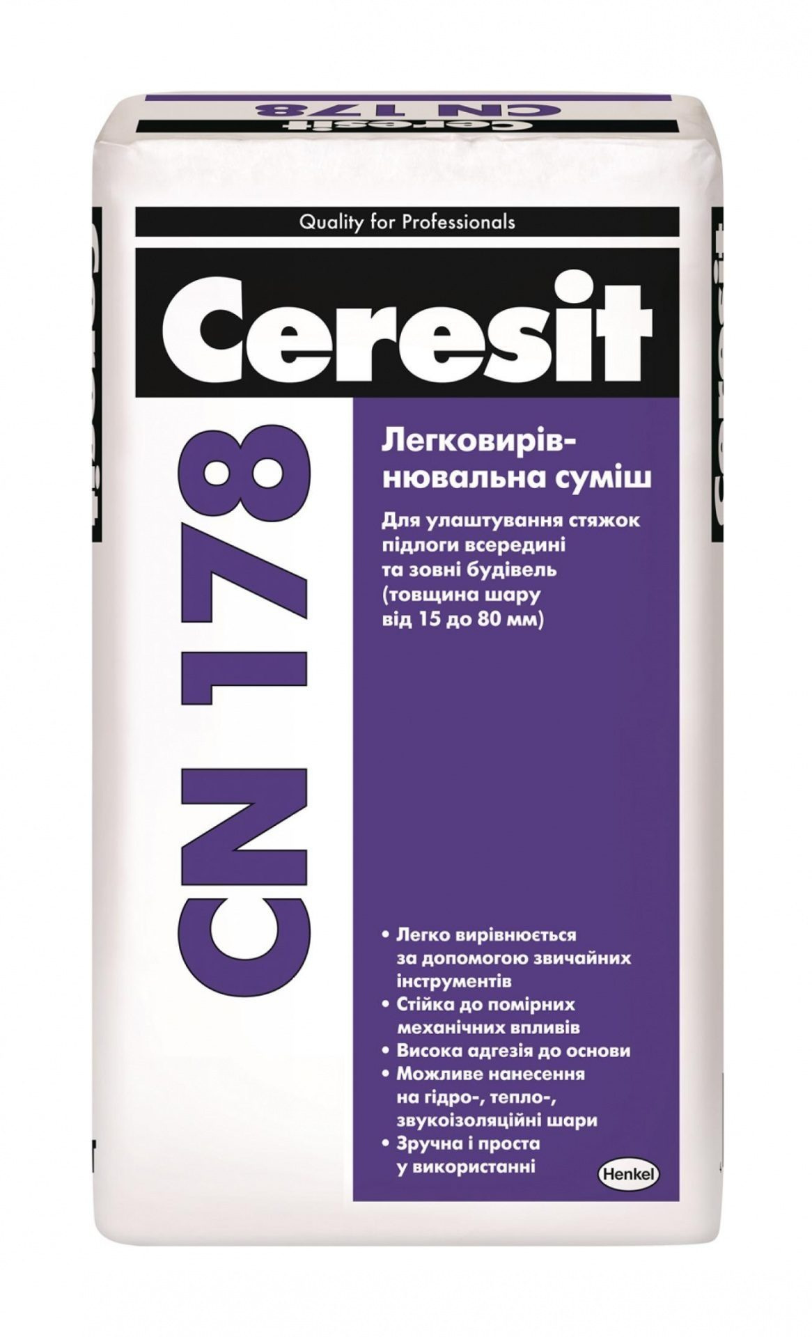 Характеристики товару Легковирівнювальна стяжка Ceresit CN 178 25 кг