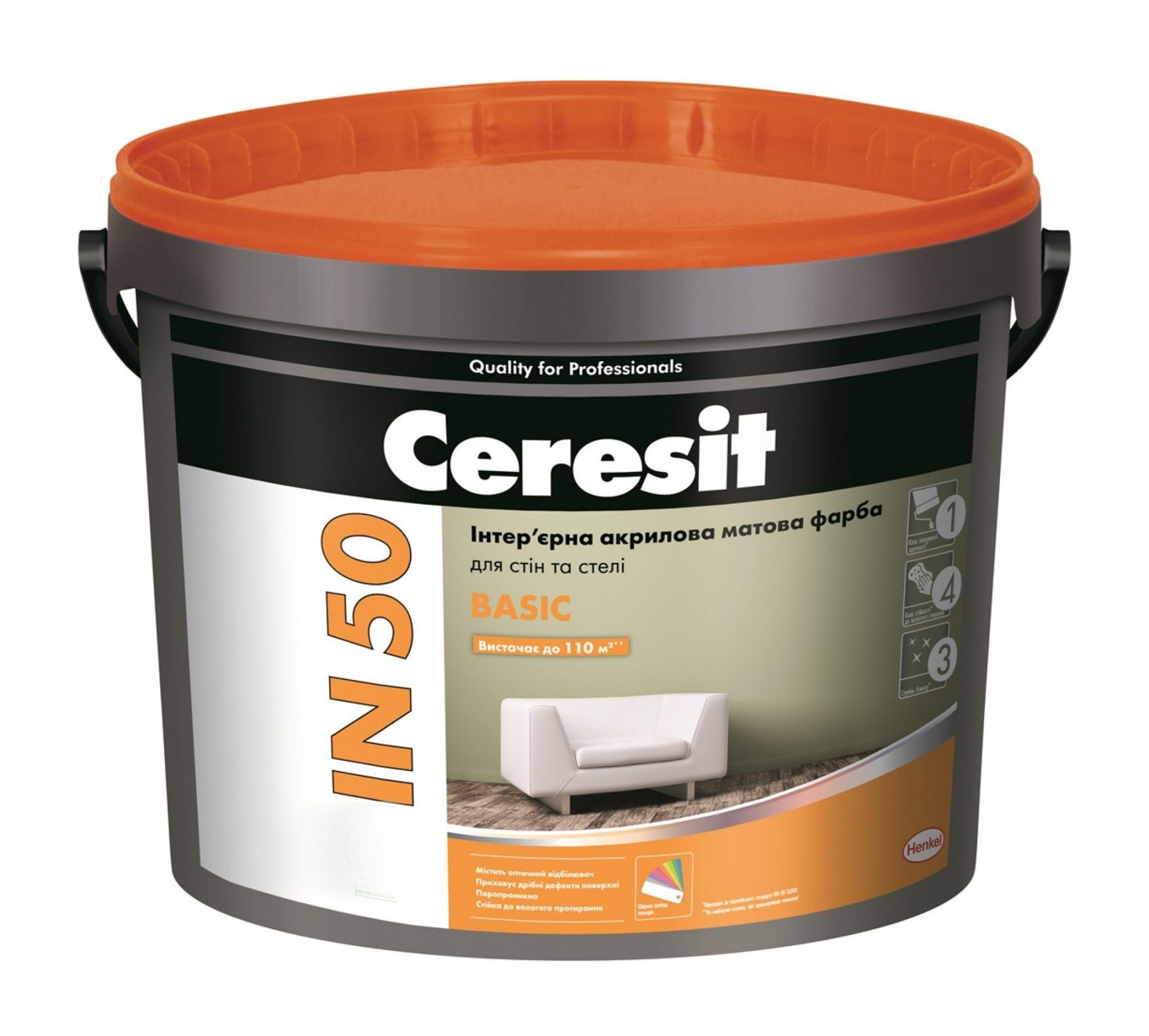 Опис Інтер'єрна акрилова фарба Ceresit IN 50 BASIC База А матова 3 л біла
