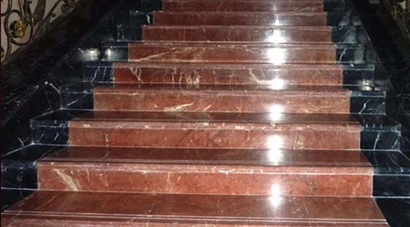 Rojo Alicante – червоної колірної палітри мармур родом з італійських каменоломень. Насичений фон вражає мінливістю при зміні освітлення. То він бордовий, то теракотовий світлий, то виблискує золотом. Інтенсивність малюнка проявляється завдяки найтоншим павутинки золота, сріблястим прожилкам, насиченістю сонячними відблисками.