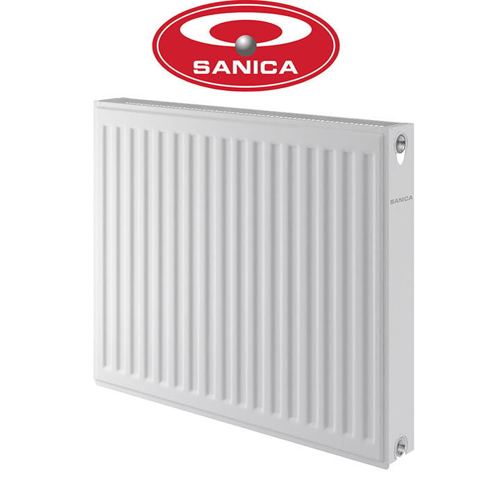 є панельний опалювальний металевий теплообмінник з бічним підключенням труб і застосуванням рідкого теплоносія на основі води. Дане виконання дозволяє здійснювати як ліве, так і праве бічне підключення до центральної або автономної системи опалення. Головні техніко-теплові характеристики радіаторів є типовими для даного класу опалювальних приладів – максимально допустимий (критичний) робочий надлишковий тиск становить 13 бар, стандартний робочий тиск – близько 10 бар, максимально допустима температура радіатора відповідає температурі перегрітої пари та становить близько 120 град. Цельсія. Радіатори Sanica відповідають стандарту якості TS EN 442, пофарбований білою фарбою.Комплектація радіаторів Sanica: