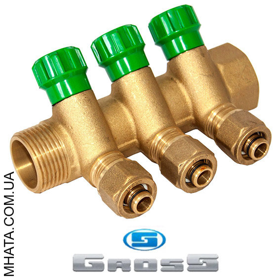 Опис Коллектор с вентильным перекрытием 1" на 3 выхода Gross без покрытия