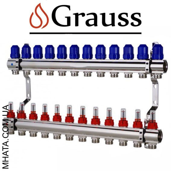 Колектор Graussдля системи "ТЕПЛА ПІДЛОГА" з витратомірами та термостатичними клапанами.