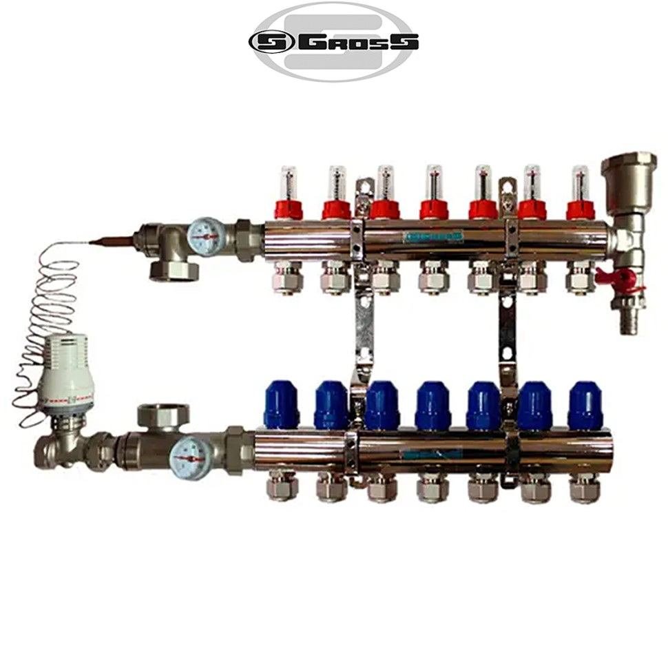 КолекторGROSSдля системи "ТЕПЛА ПІДЛОГА"із витратомірами 7 виходів.