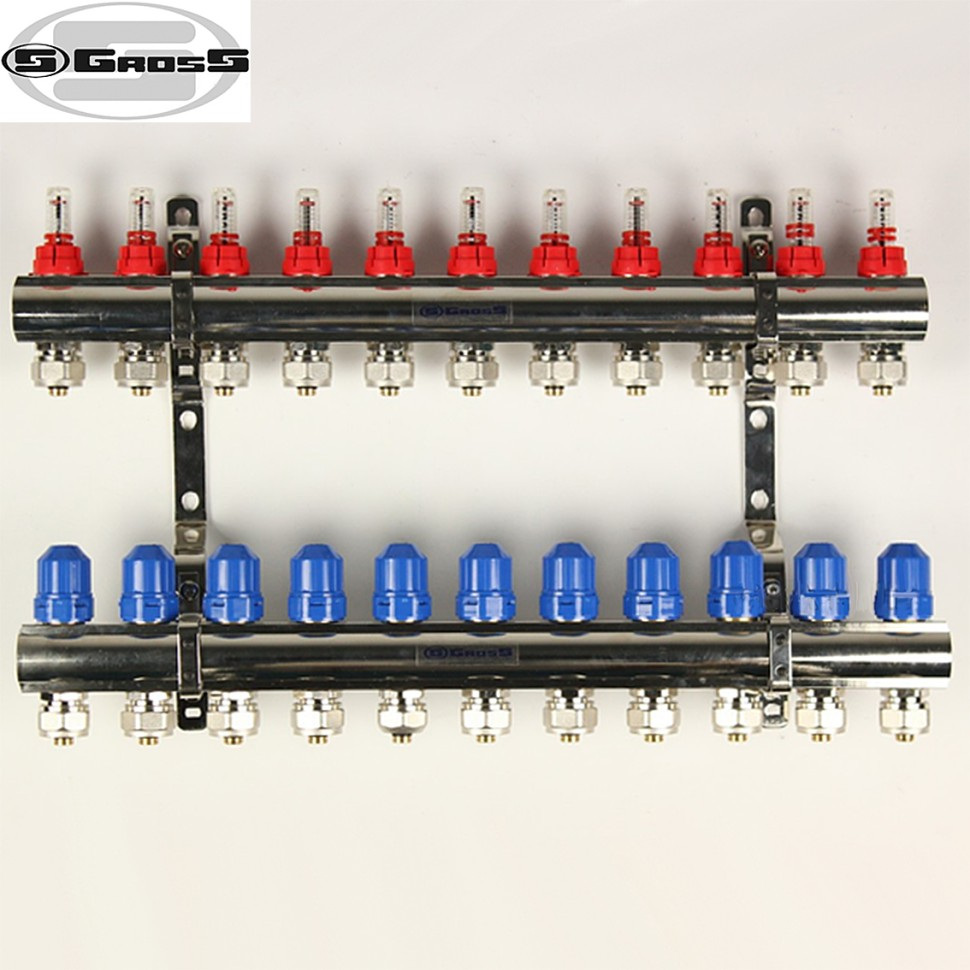 КолекторGROSSдля системи "ТЕПЛА ПІДЛОГА"із витратомірами 11 виходів.