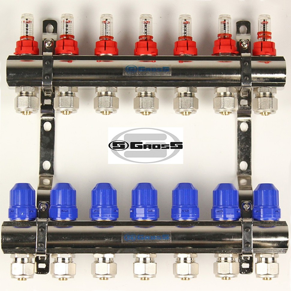 КолекторGROSSдля системи "ТЕПЛА ПІДЛОГА"із витратомірами 7 виходів.