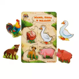 Дерев'яний пазл-вкладиш "Сім'я-свійські тварини-2" Ubumblebees ПСФ003 PSF003 більше-менше
