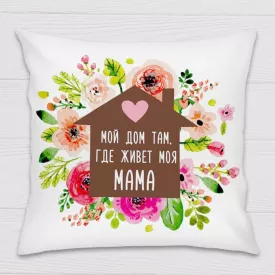 Подушка декоративная с принтом "Мой дом там, где живет моя Мама" Белый Кавун П000235