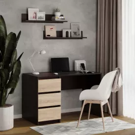 Письмовий стіл на 3 шухляди без ручок No Brand FT-224 Left 1200х600х750 мм Венге Магія-Дуб Сонома (25193603)
