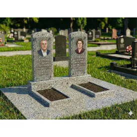 Подвійний пам'ятник із сірого граніту з майданчиком