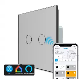 Розумний сенсорний прохідний/перехресний EC вимикач 2 сенсора Livolo чорний скло (VL-M7FC2SZ2-2BP)