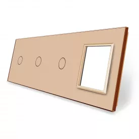 Сенсорна панель вимикача Livolo 3 каналу та розетку (1-1-1-0) золото скло (VL-C7-C1/C1/C1/SR-13)