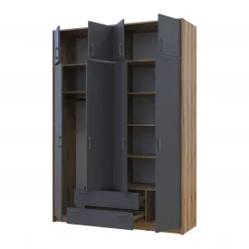 Шафа двостулкова антрацит довга на чотири двері з атрессолю ящиками Doros Ронді 4 ДСП короб Дуб Артизан