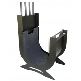 Набір для каміна з дровницею та сумкою для дров із брезенту Ferrum Перун 4 інструменти Чорний (883\1)