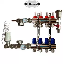 Колектор 1100-5 Grauss на 5 виходів з термостатичними клапанами для опалення (без євроконусів) (Чехія)