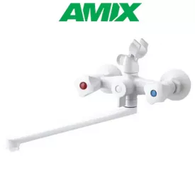 Змішувач для ванни з термопластику AMIX Oscar-009 EURO SET White (зі шлангом, лійки та кронштейном), Білий