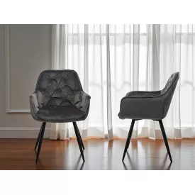 Комплект обідніх стільців Аріс М-65 (2 шт.) з підлокітниками, велюр Сірий/чорний, для кухні, їдальні, 860×580×590 мм