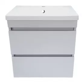 Тумба Mikola-M пластикова 2.0 з двома висувними ящиками та керамічним умивальником 60 см