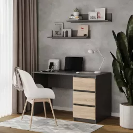 Письмовий стіл на 3 шухляди без ручок No Brand FT-224 1200х600х750 мм Антрацит-Дуб Сонома (9047975)