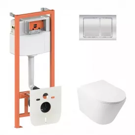 Інсталяція для унітазу 3 в 1 Qtap Nest + унітаз із сидінням, з панеллю змиву (QT05335170W0133M425M06028CRM)